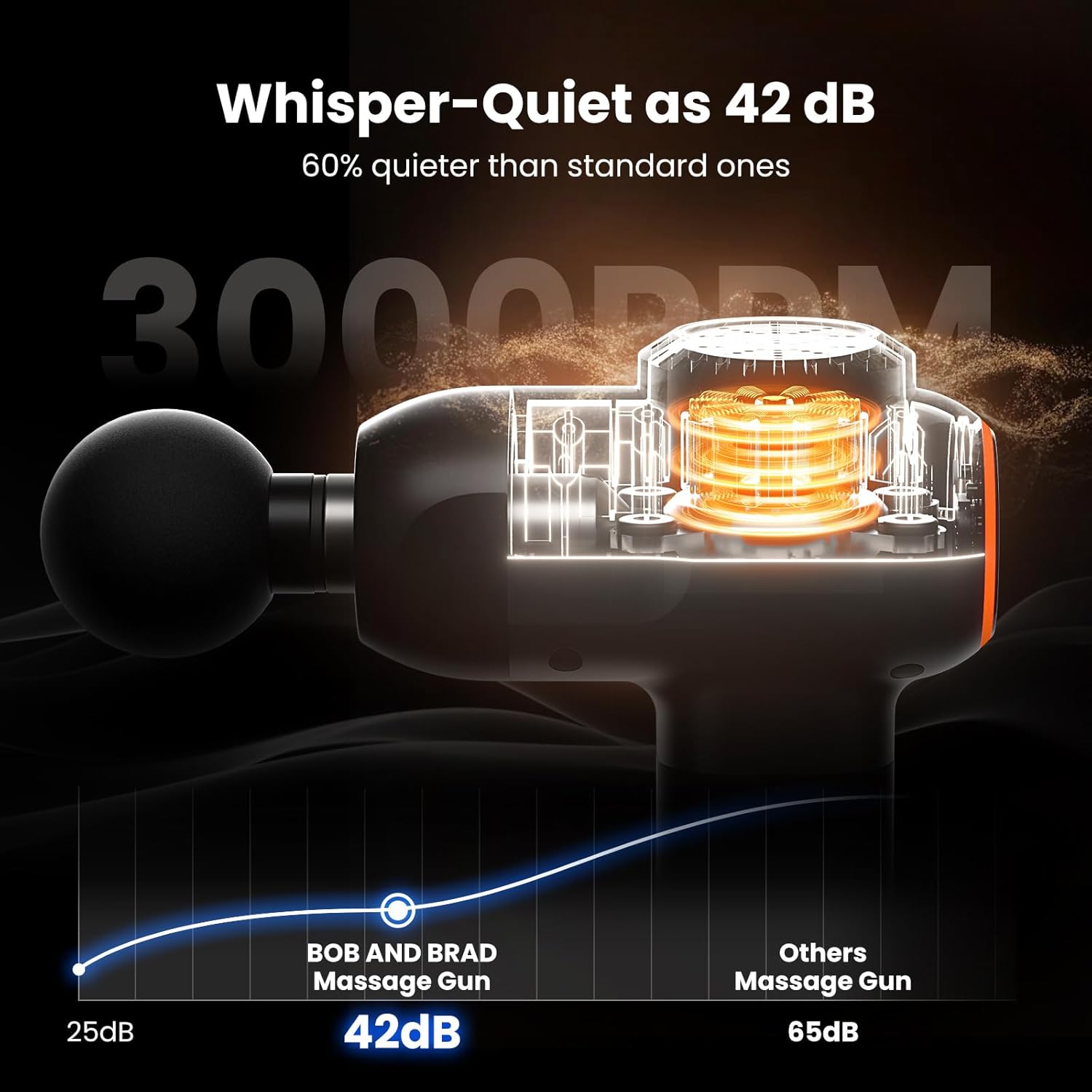 Uniquely Elegant: Bob and Brad C2 Massage Gun is crafted from premium ABS material, not cheap plastic or stainless steel, with a silicone grip added to minimize hand vibration, conforming to ergonomic design. Paired with the latest brushless motor and automotive-grade battery, it ensures stronger, safer power output. These features make it the ultimate choice for gifting.