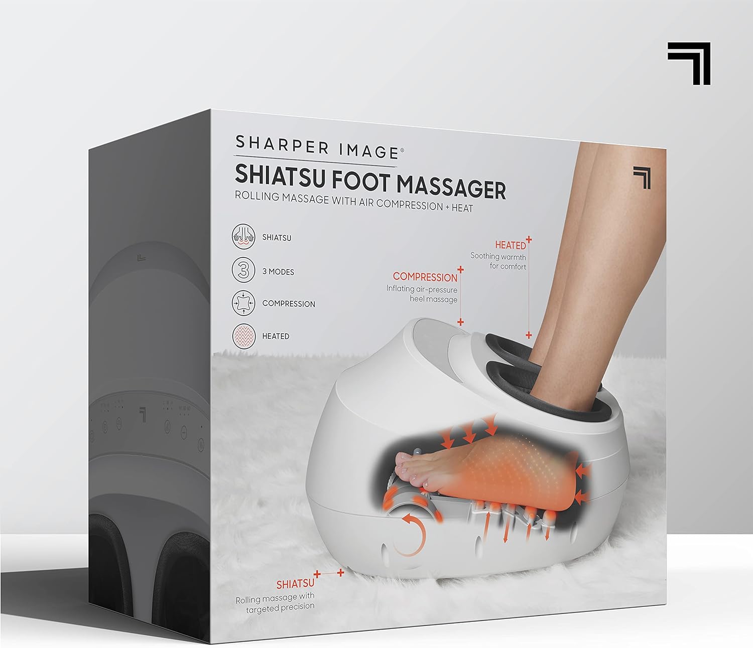 Sharper Image Electric Shiatsu Foot Massager with Heat & Air Compression, Deep Kneading Rollers & Washable Cover, Targets Heels, Balls & Arches up to Mens Size 12, Gift for Women & Men