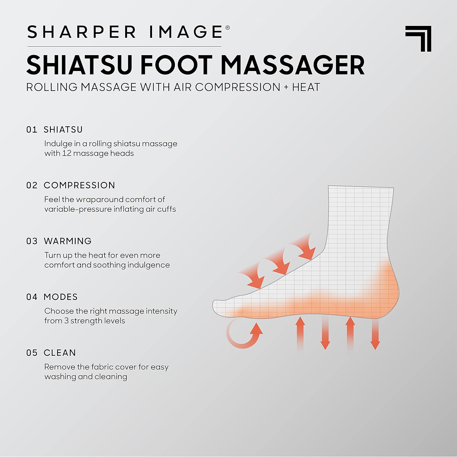 Deep-Kneading Shiatsu Massage: Twelve rotating nodes deliver a powerful, full-coverage shiatsu foot massage to help ease tension in the heels, balls, and arches, promote healthy circulation, and enhance relaxation. Intended for foot use only